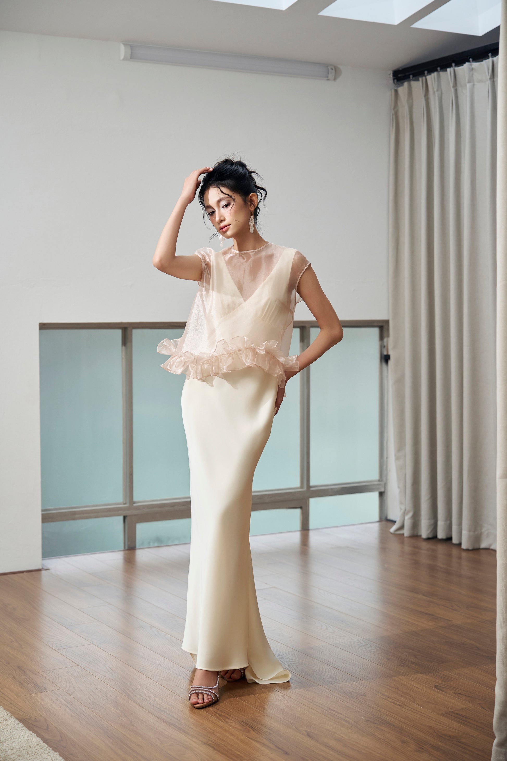 控えめな肌見せを叶えながらも、女性らしい優雅さと上品さをプラスします。